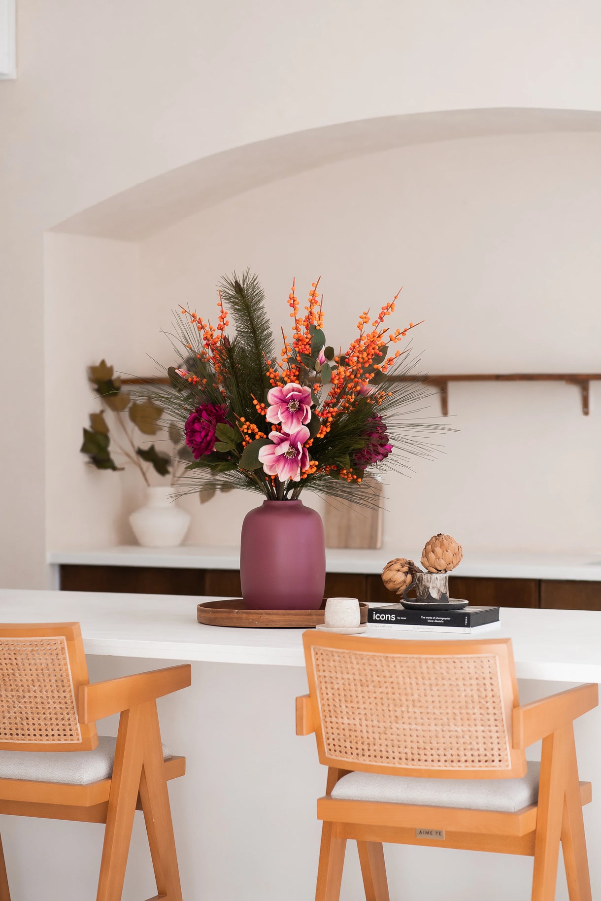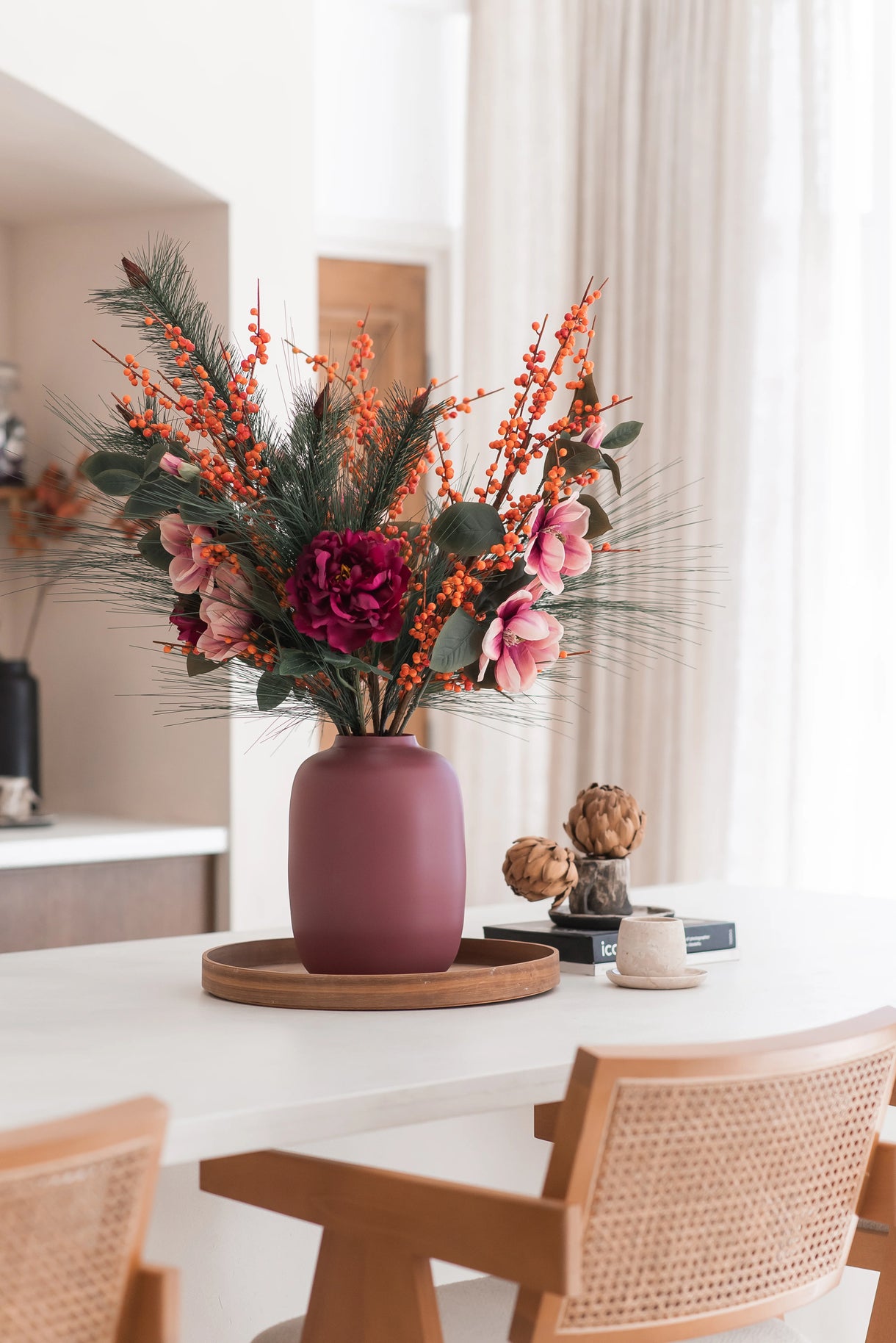 🍁 Ramo de flores artificiales de seda Cozy Winter - 110 cm de altura
