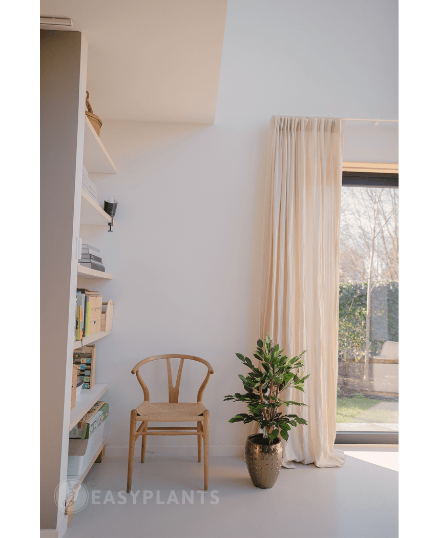 - Siempre Verde: Olvídate de las preocupaciones por riego o luz; este ficus artificial mantiene su esplendor durante todo el año.